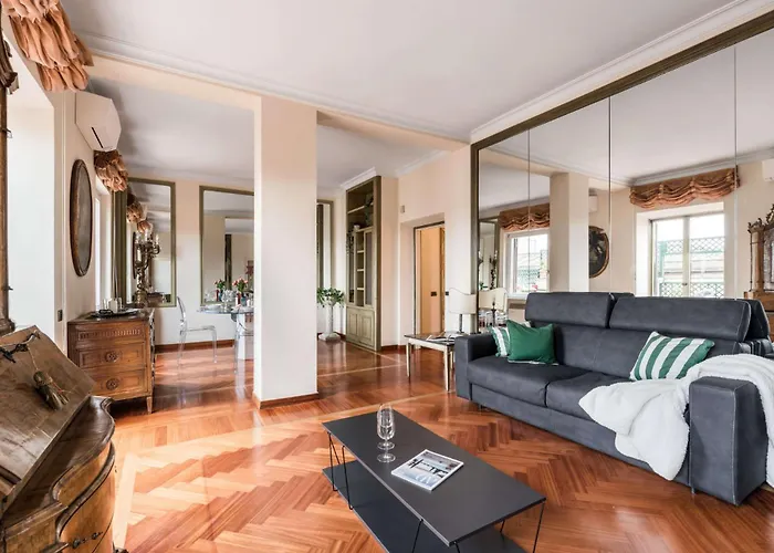 La résidence spacieuse est à environ 1 km de Forum de Trajan et relativement près du Panthéon. Les Marchés Espagnoles sont situés à moins de 13 minutes à pied du domicile de 108 m^2.